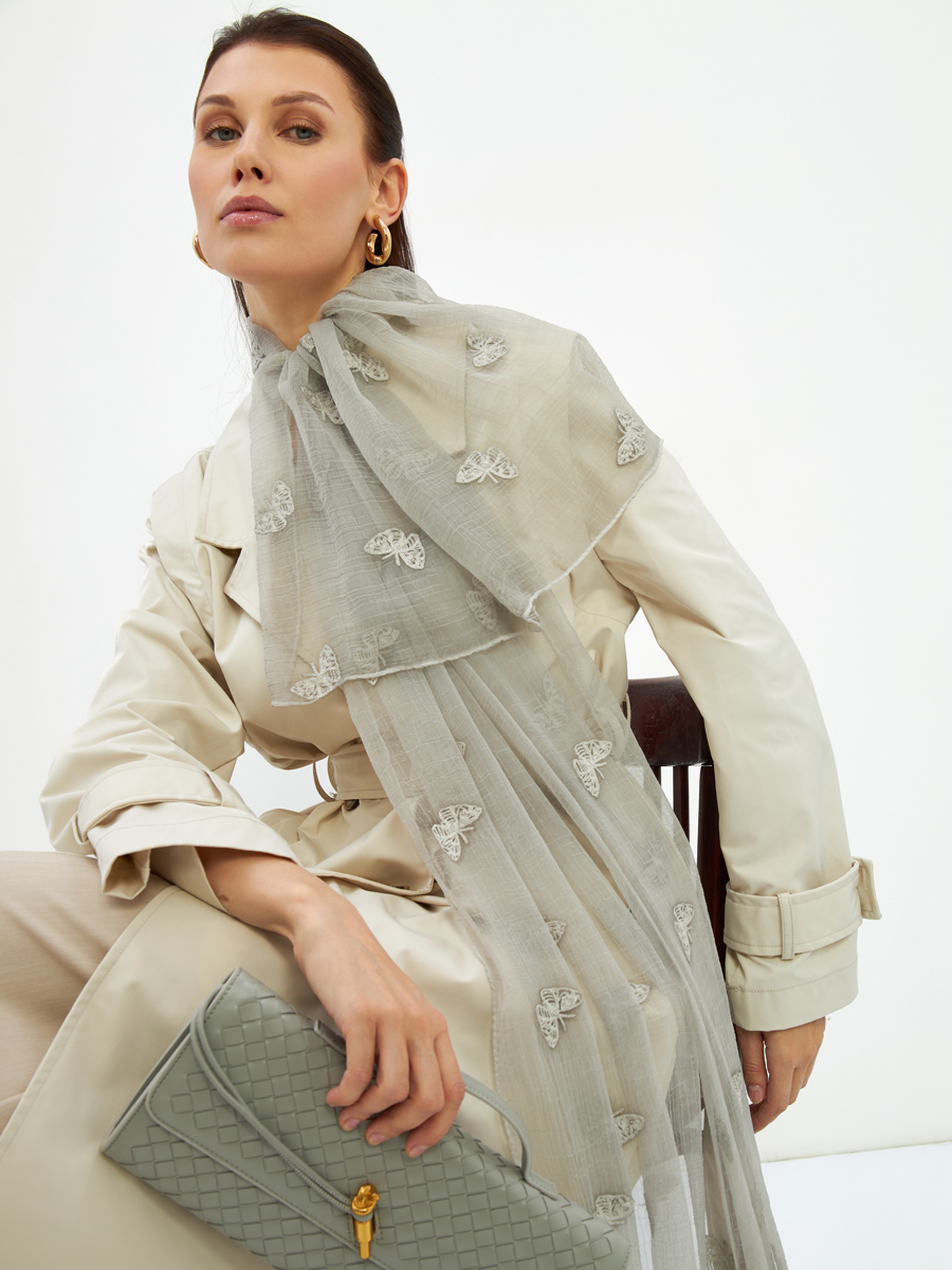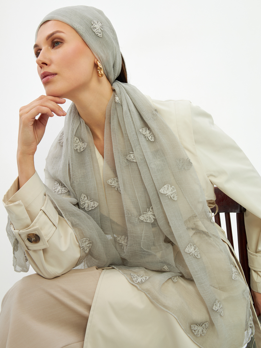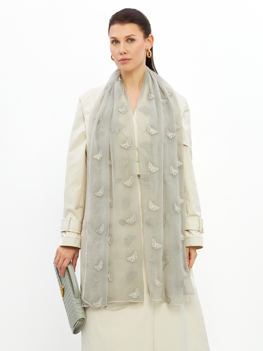 Представляем уникальный двусторонний палантин, который станет жемчужиной ассортимента вашего бутика. Разработанный и произведенный нами, этот аксессуар демонстрирует безупречное качество TANTINO, от выбора материалов до финальной отделки.Особенности модели DRK-1454-99:Премиальный материал: Изготовлен из тонкого жатого шифона — легкого, воздушного и приятного на ощупь. Его деликатная текстура придает изделию особый шарм и комфорт в носке.Изысканная вышивка: Двусторонний дизайн украшен сложной вышивкой в стиле арт-деко, представляющей собой нежные, стилизованные бабочки. Этот эксклюзивный принт добавляет утонченности и узнаваемости.Безупречное исполнение: Аккуратная обработка краев и внимание к каждой детали подчеркивают высокий стандарт производства TANTINO. Мы гарантируем долговечность и сохранение первозданного вида палантина даже при активной носке.Универсальность и стиль: Легкий оттенок серого и воздушная текстура делают палантин идеальным дополнением к любому образу – от повседневного до вечернего. Может быть использован как накидка, шарф или головной убор, предлагая множество вариантов стайлинга для ваших клиентов.Включите этот палантин в ваш ассортимент, чтобы предложить клиентам не просто аксессуар, а произведение искусства. Высокая маржинальность и постоянный спрос на уникальные качественные изделия обеспечат стабильный рост продаж вашего бутика. Подчеркните статус вашего магазина с продукцией, созданной с любовью и мастерством TANTINO.