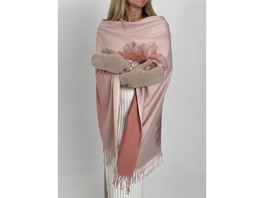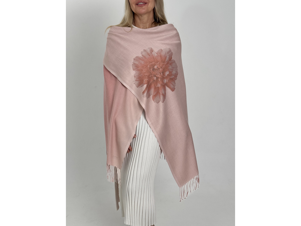 Палантин пион: первая сторона рисунок, вторая сторона деграде.