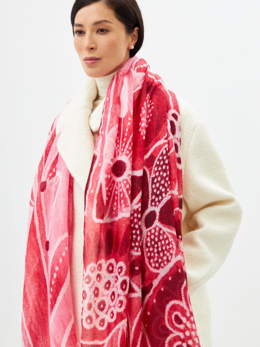 Представляем жемчужину вашей новой коллекции: элегантный двусторонний палантин D2H-135-2, разработанный для самых взыскательных ценителей моды. Этот аксессуар — воплощение экспертного подхода к дизайну и производству, полностью реализованного на наших мощностях, от идеи до финального стежка.Преимущества для вашего бизнеса:Уникальный дизайн: Оригинальный рисунок в стиле «арт-деко» мгновенно привлекает внимание и выгодно выделяет изделие на фоне конкурентов. Двустороннее исполнение позволяет создавать разнообразные образы и увеличивает ценность для конечного покупателя, предлагая два стиля в одном.Исключительное качество материалов: Использование очень мягкой и нежной текстуры ткани гарантирует непревзойденный комфорт при носке и приятные тактильные ощущения, что формирует лояльность клиентов.Безупречное исполнение: Мы уделяем особое внимание деталям. Аккуратная обработка краев изделия подчеркивает высокий уровень нашего производства и долговечность палантина, минимизируя возврат и повышая вашу репутацию.Легкость в уходе: Возможность машинной деликатной стирки делает этот палантин практичным выбором, что является дополнительным плюсом для ваших клиентов и упрощает его эксплуатацию.Расширьте ассортимент вашего бутика или шоурума востребованным аксессуаром, который обеспечит стабильный спрос и лояльность клиентов. Палантин D2H-135-2 — это инвестиция в стиль, качество и успешные продажи, гарантирующая прибыль и удовлетворенность ваших покупателей.