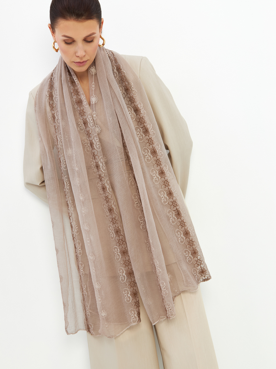 Палантин женский двусторонний с вышивкой Арт-деко DRK-1452-69