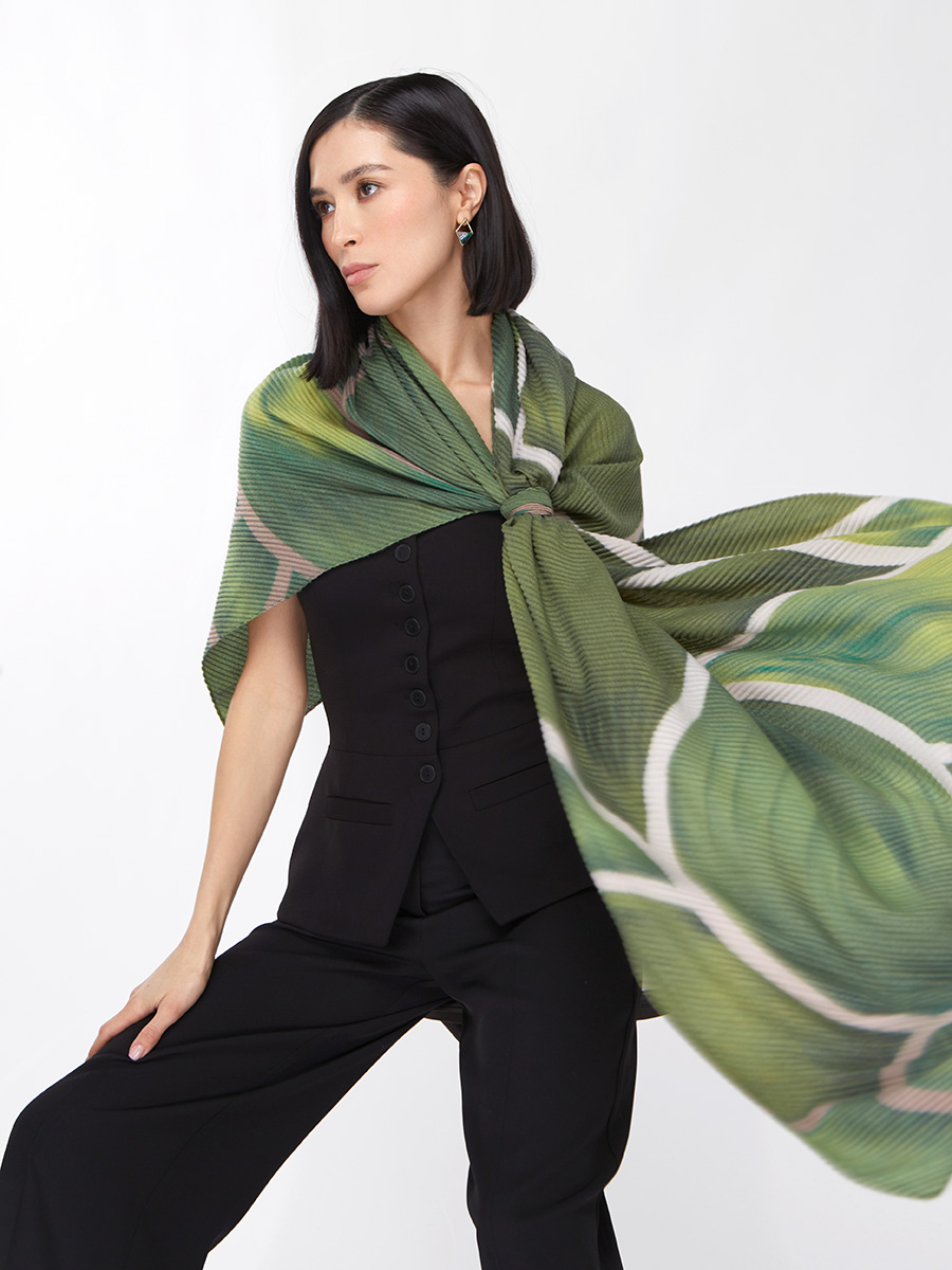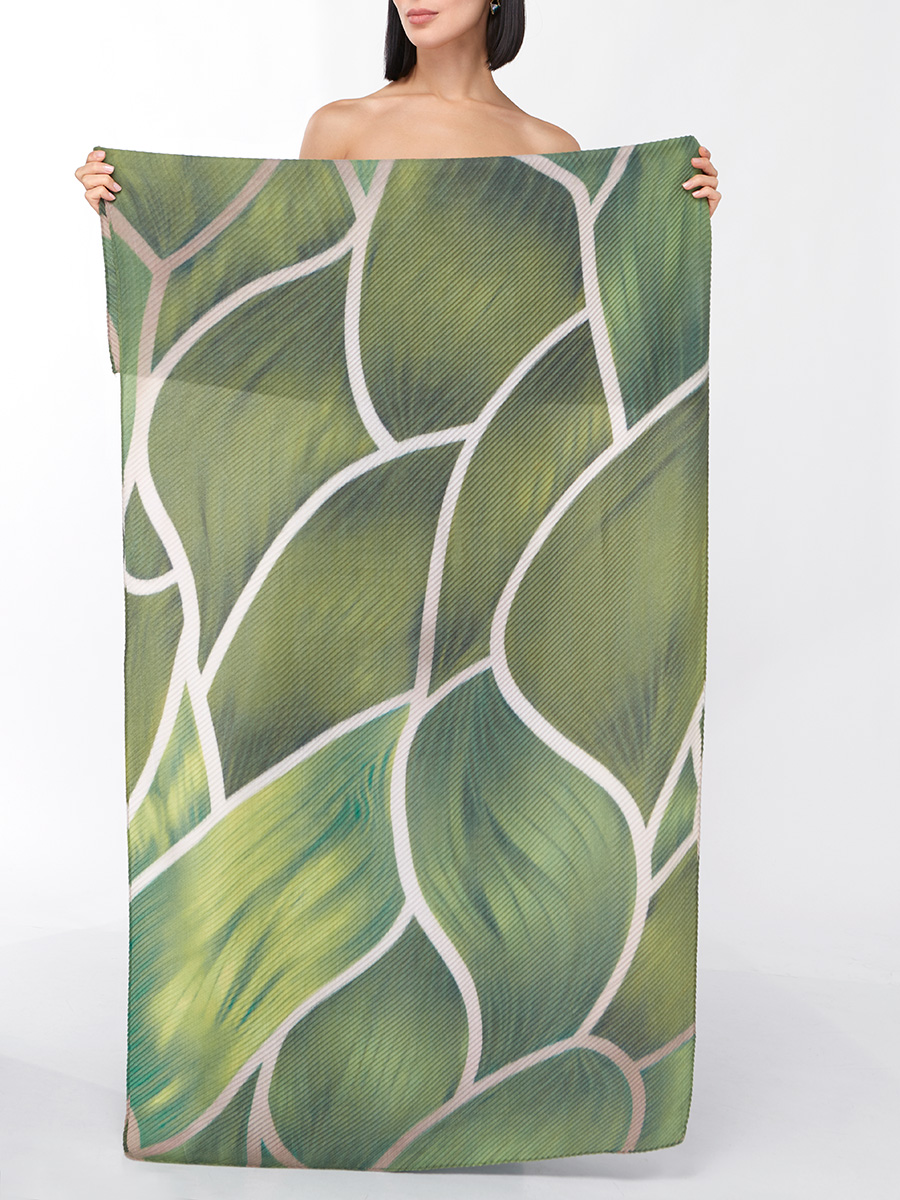 Большой, мягкий, тонкий и очень нежный двусторонний палантин с рисунком. Ткань жатая. Только ручная стирка.