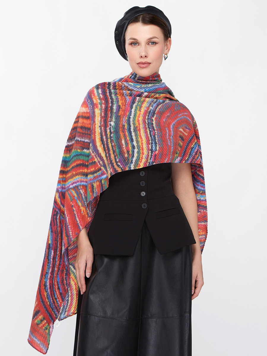 Большой, мягкий, тонкий и очень нежный двусторонний палантин с рисунком. Ткань жатая. Только ручная стирка.