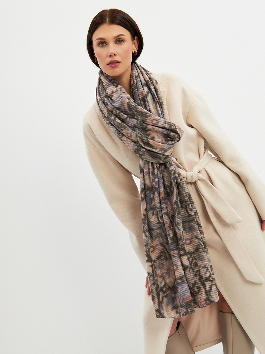 Большой, мягкий, тонкий и очень нежный двусторонний палантин с рисунком. Ткань жатая. Только ручная стирка.