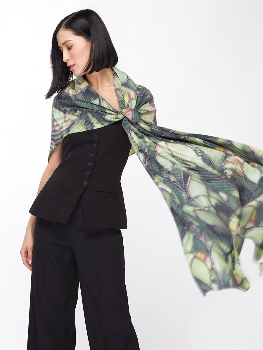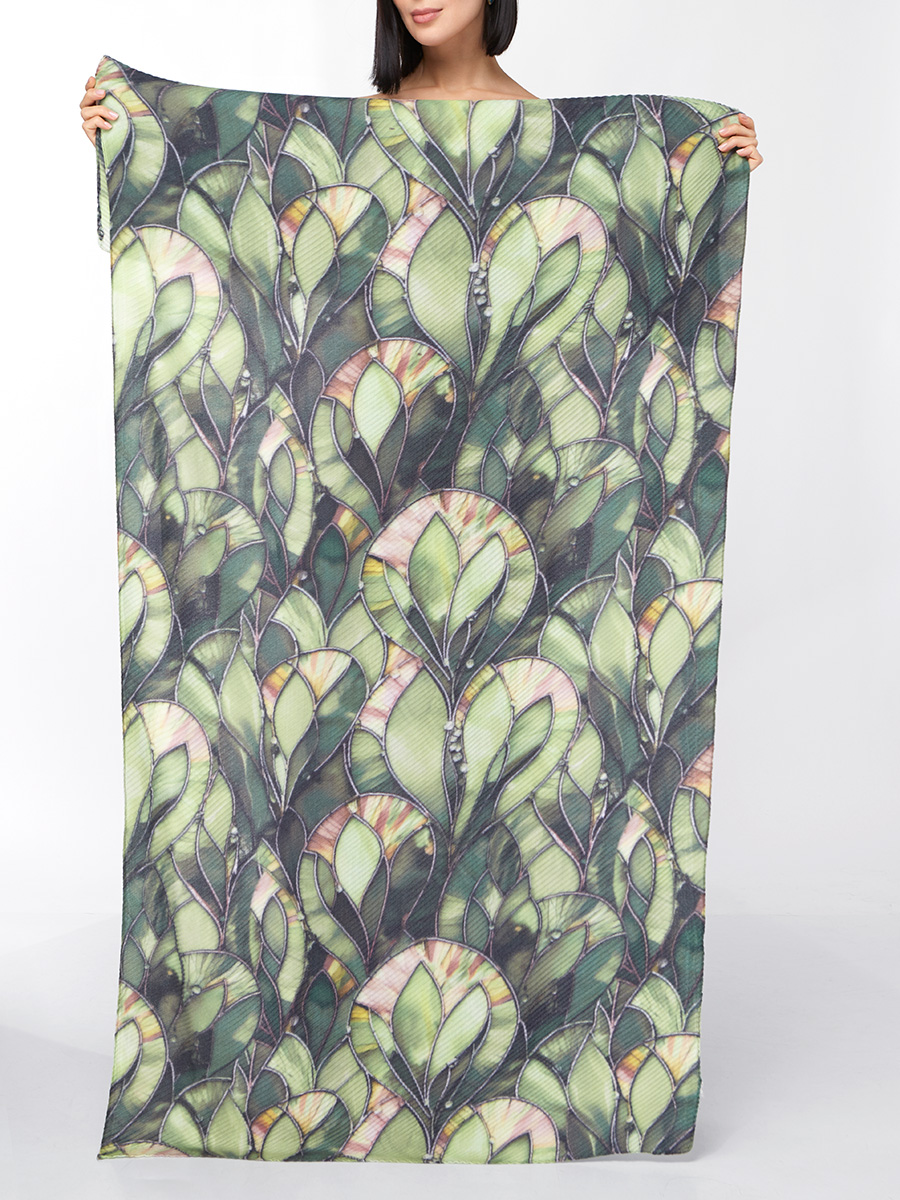 Большой, мягкий, тонкий и очень нежный двусторонний палантин с рисунком. Ткань жатая. Только ручная стирка.