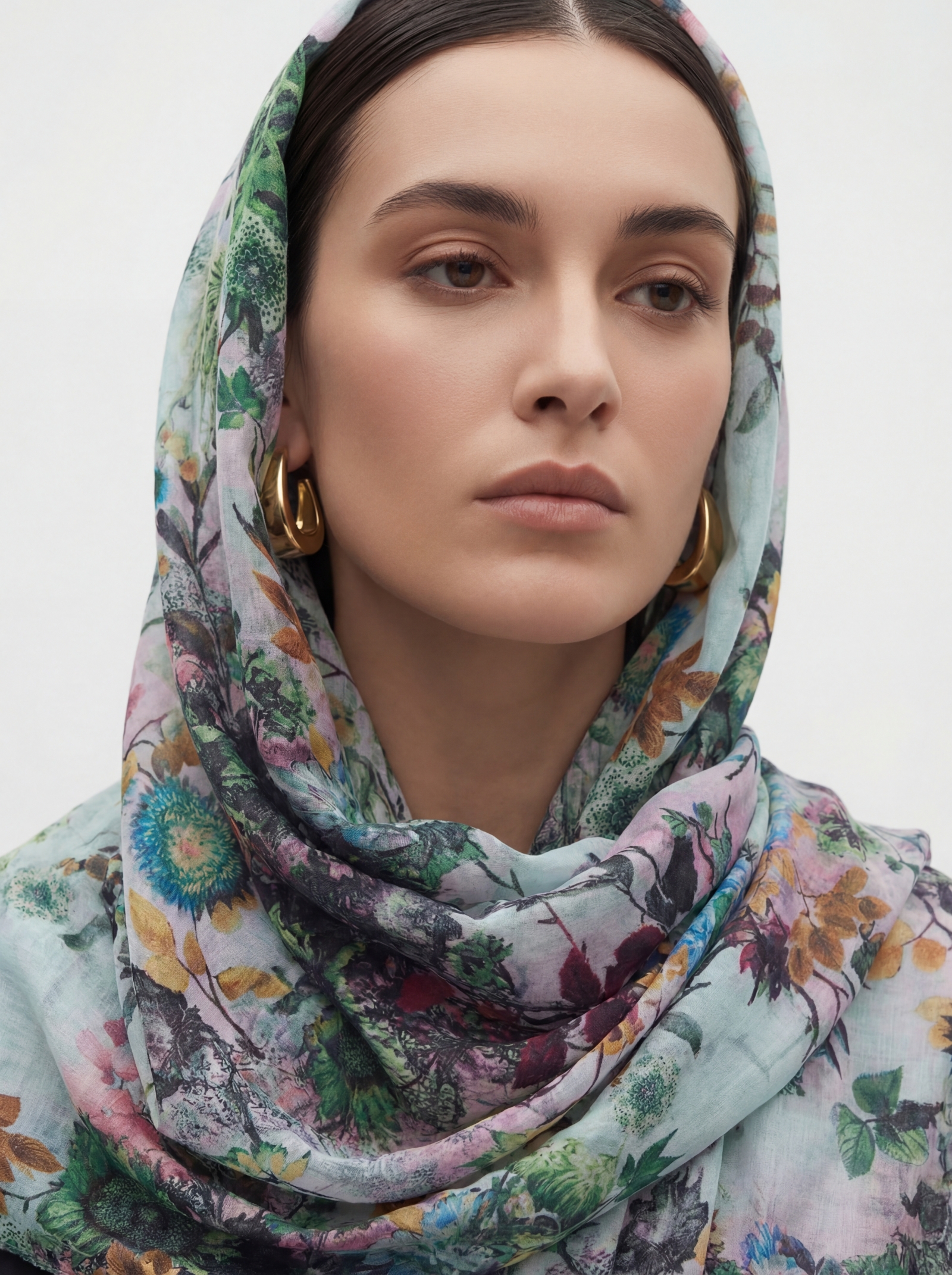 Большой, мягкий, тонкий и очень нежный палантин с рисунком. Только ручная стирка.