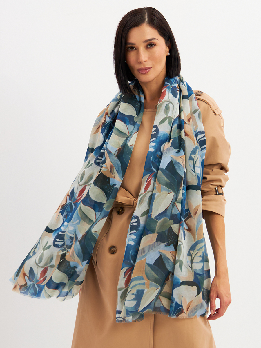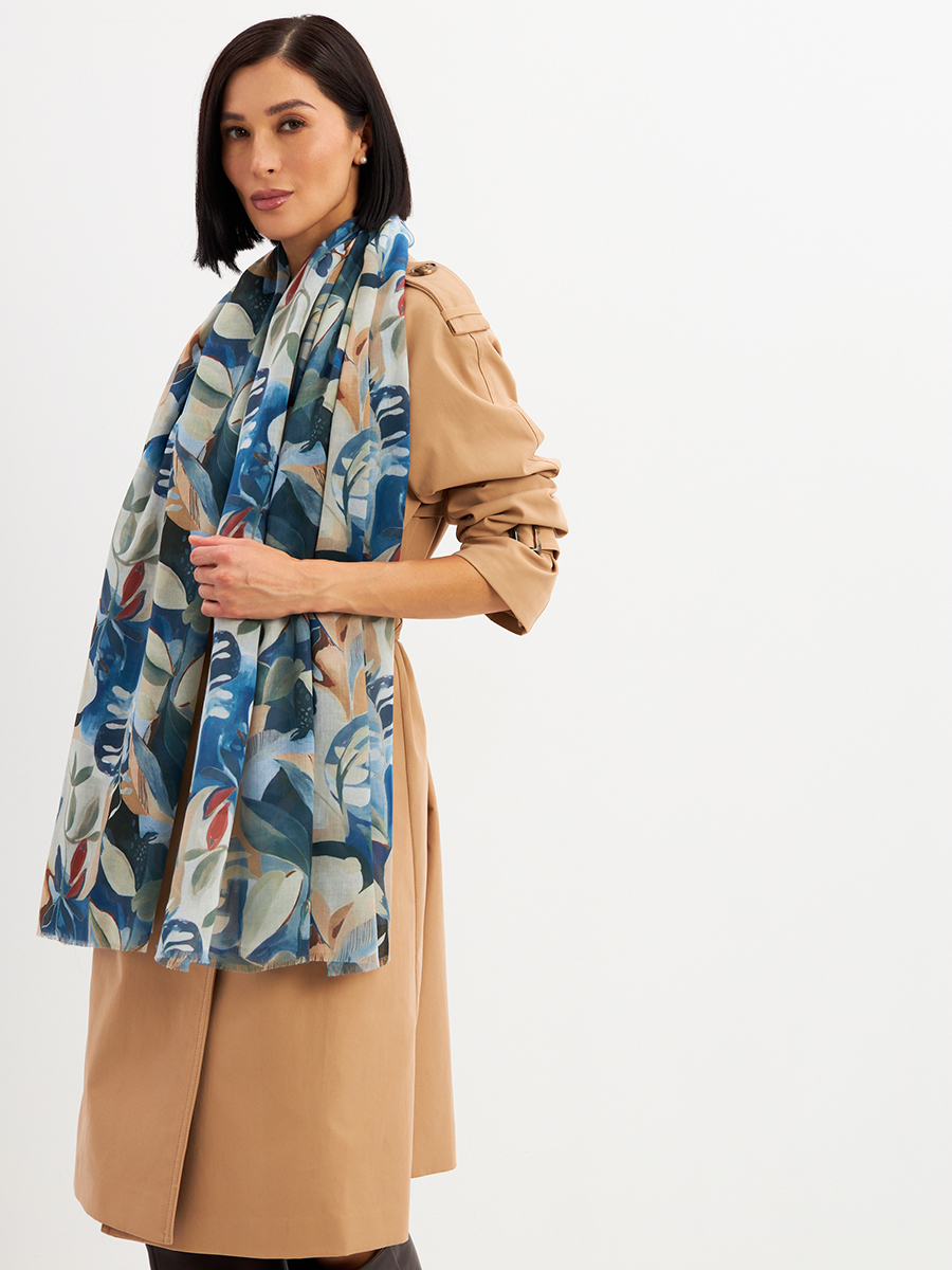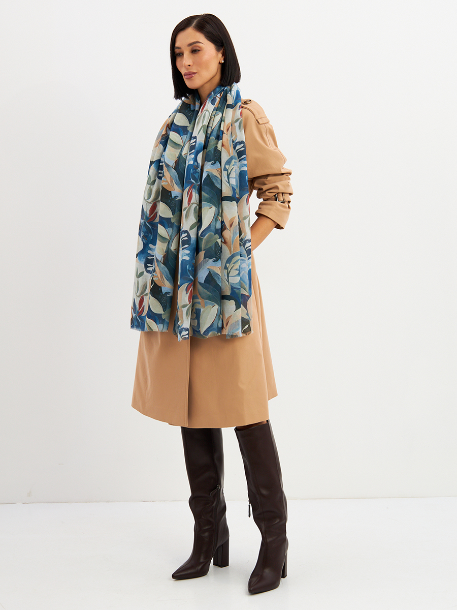 Большой, мягкий, тонкий и очень нежный палантин с рисунком. Края изделия украшены бахромой ручной работы. Машинная деликатная стирка.