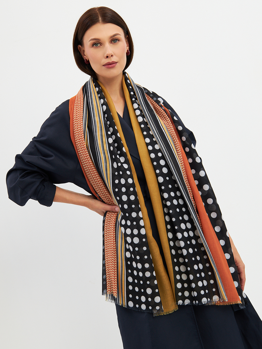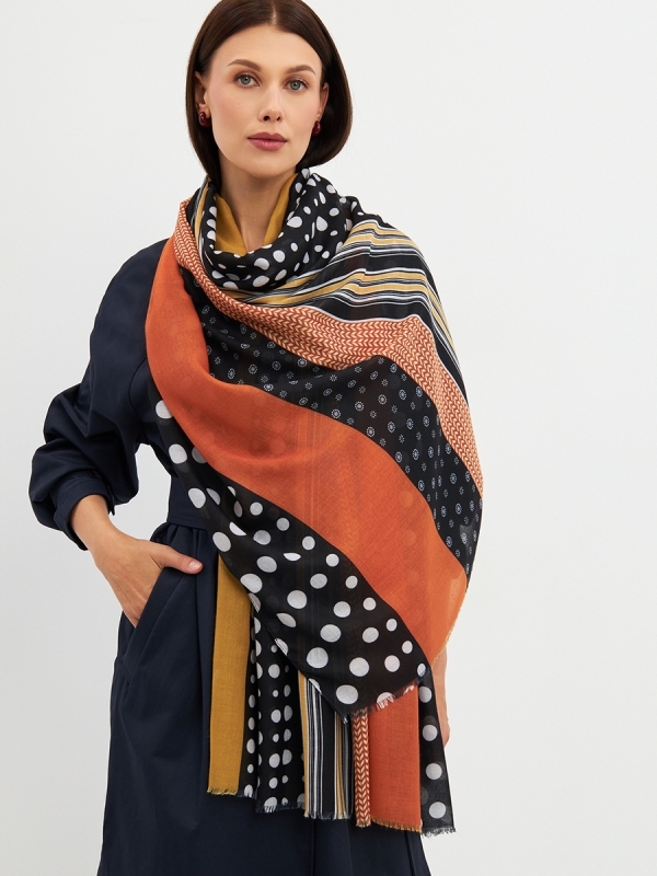 Большой, мягкий, тонкий и очень нежный палантин с рисунком. Края изделия украшены бахромой ручной работы. Машинная деликатная стирка.