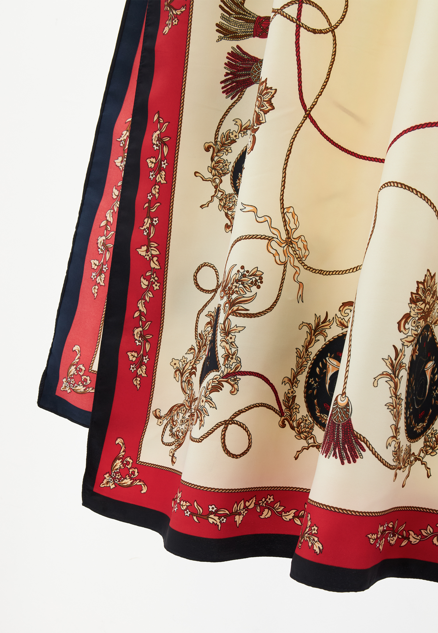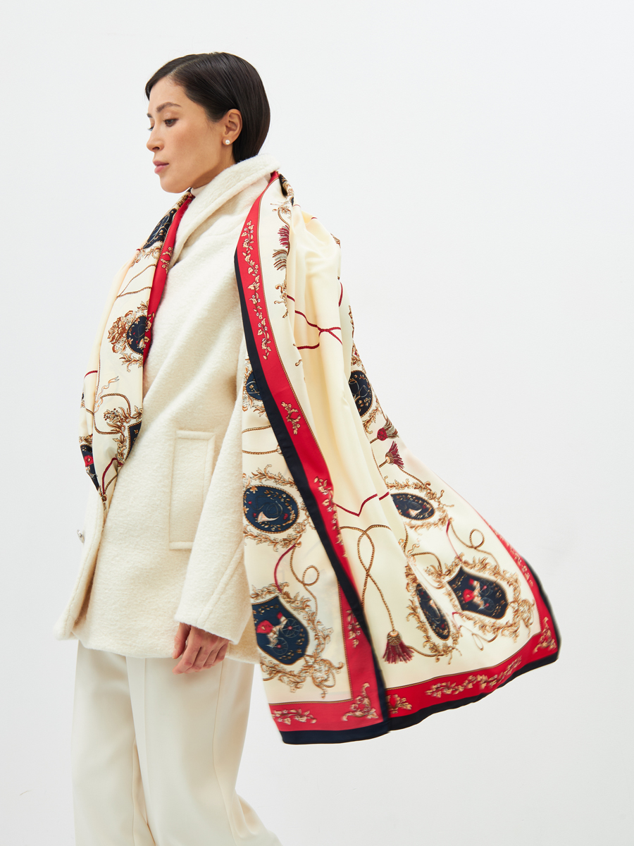 Представляем уникальный двусторонний палантин LO-1115 – жемчужину вашей оптовой коллекции, способную мгновенно привлечь внимание самых взыскательных покупательниц, ценящих истинную элегантность и безупречное качество.Экспертный дизайн и превосходное качество:Роскошный принт в стиле «арт-деко» с медальонами, цепями и узорами на светлом фоне, обрамленный красно-черной каймой, придает изделию аристократичный шик и неповторимый характер.Двустороннее исполнение расширяет возможности стайлинга, позволяя создавать множество разнообразных образов для вашей клиентской базы.Атласная текстура ткани обеспечивает приятные тактильные ощущения и благородный блеск, подчеркивая глубину цветов и детализацию рисунка.Аккуратная обработка краев – это гарантия долговечности и сохранности первоначального вида, демонстрирующая высокий уровень нашего производства.Как российский производитель полного цикла, мы гарантируем стабильно высокое качество. Предлагая LO-1115, вы инвестируете в продукт с высоким потенциалом продаж и маржинальности, который усилит имидж вашего бутика как поставщика эксклюзивных аксессуаров.Уход: Для сохранения идеального вида рекомендуется деликатная машинная стирка.