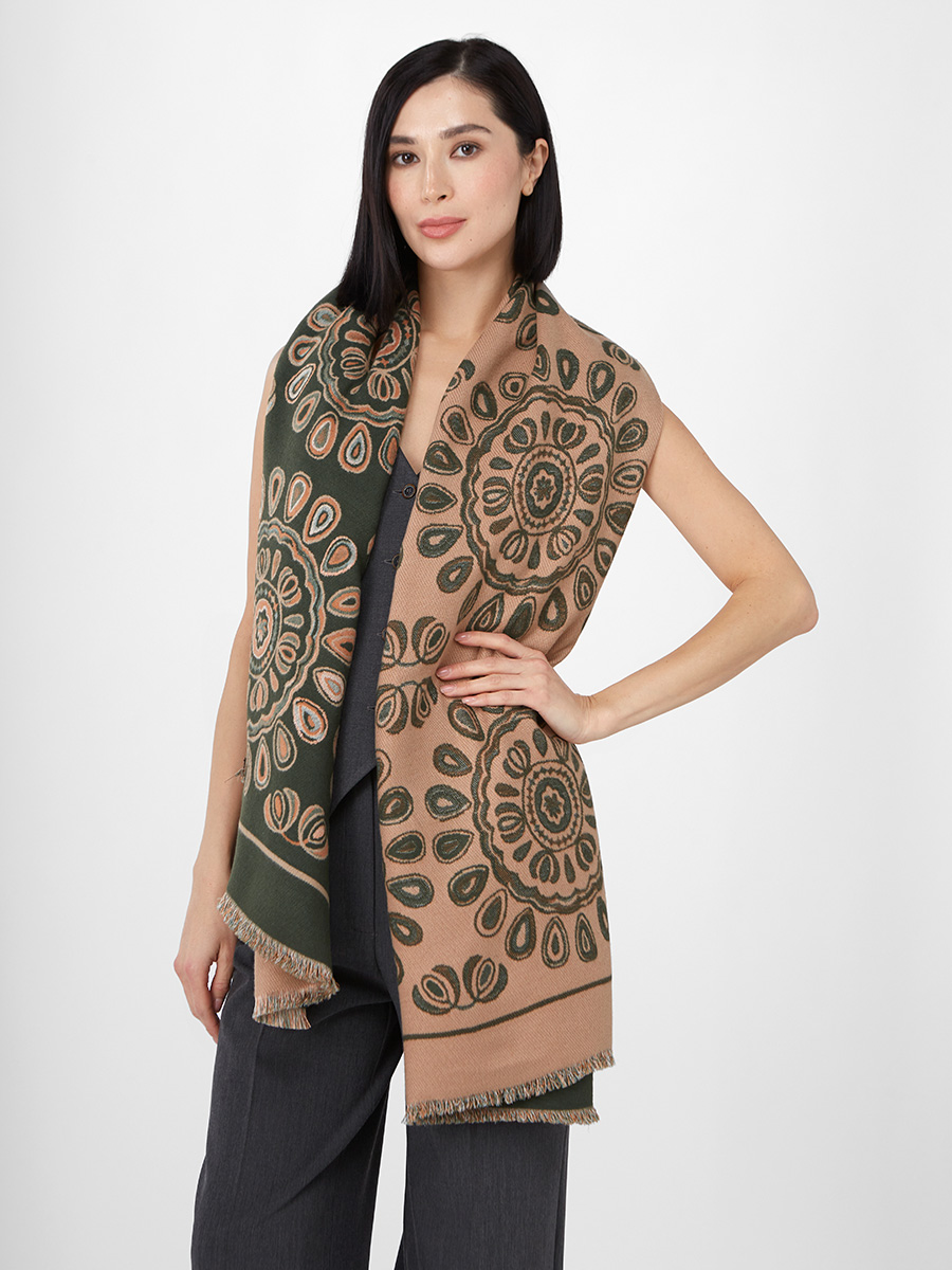 Большой, мягкий, теплый двусторонний палантин. Только ручная стирка. 65% модал/ 20% шерсть/ 15% кашемир