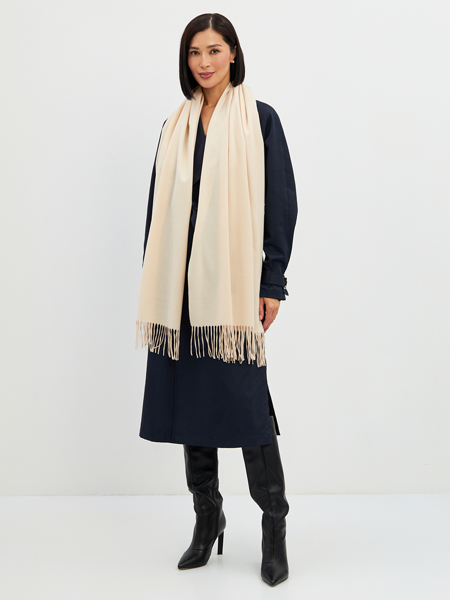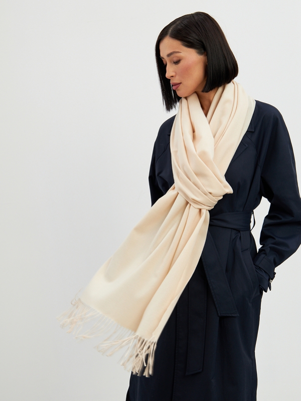 Большой, мягкий, теплый двусторонний однотонный палантин. Края изделия украшены кистями. Машинная деликатная стирка. Вискоза/ Шерсть/ Модал