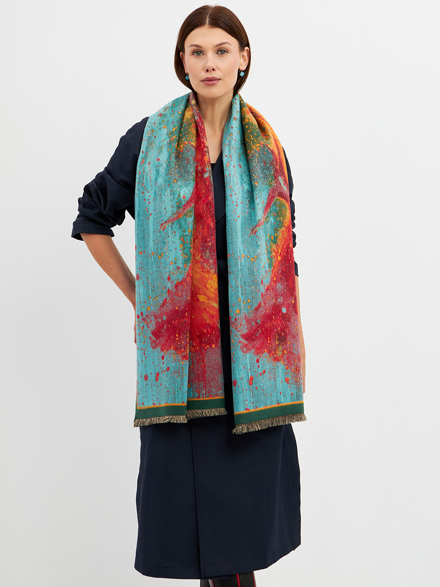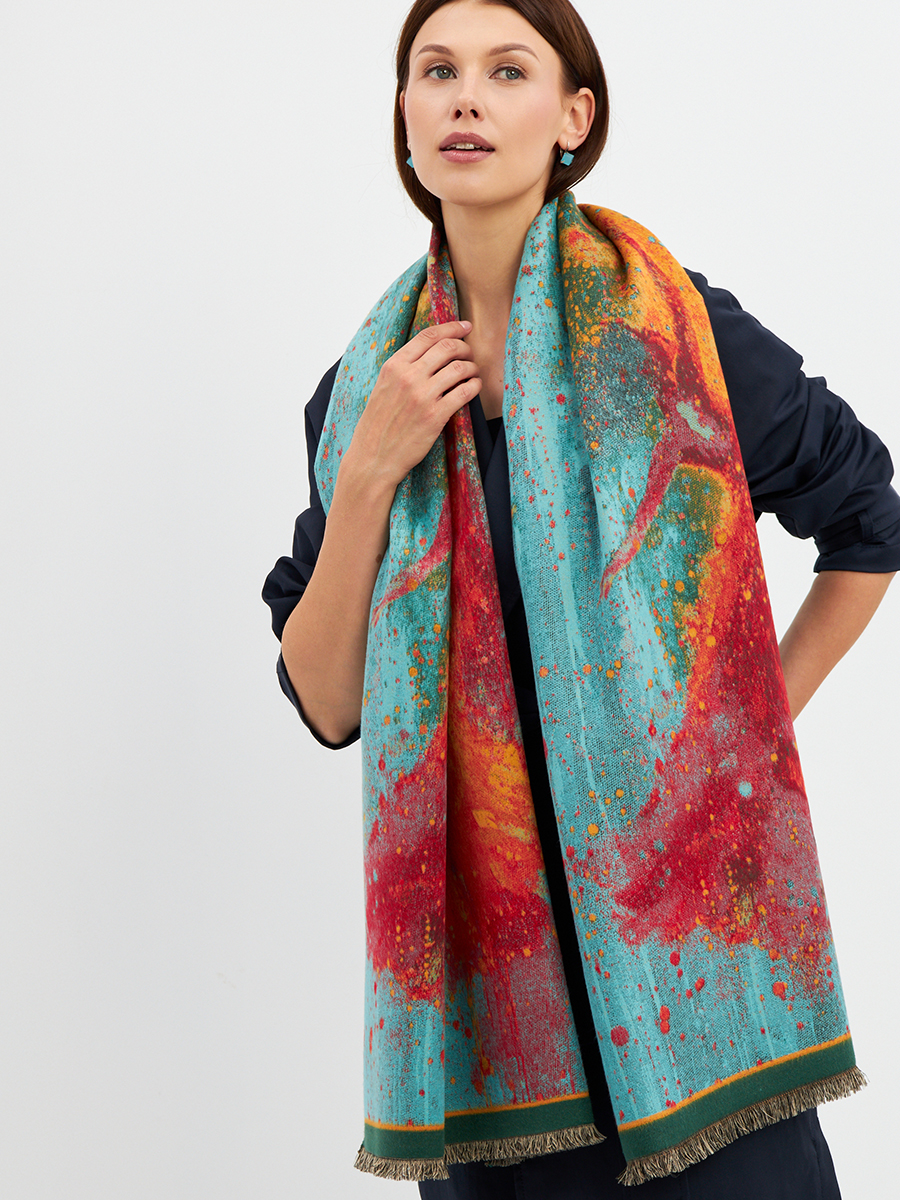 Большой, мягкий, теплый и очень нежный палантин с рисунком. Машинная деликатная стирка.
