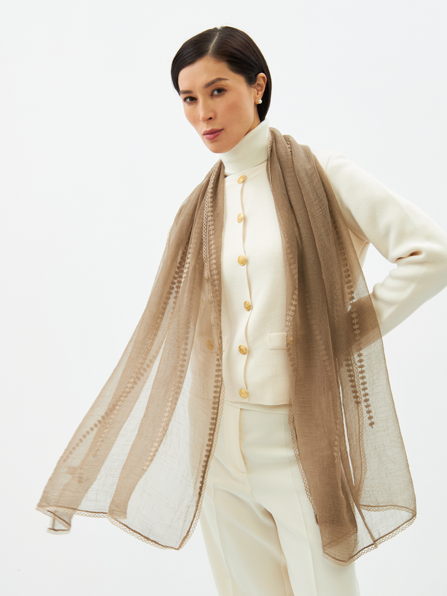 Представляем двусторонний женский палантин BB-135-83 от TANTINO – идеальное дополнение для ассортимента вашего бутика. Мы, как российский производитель полного цикла, гарантируем исключительное качество, от разработки лекал до финального пошива.Этот палантин выполнен из тонкого жатого шифона, создающего воздушность и изысканность. Его ключевая особенность – элегантная вышивка в стиле "арт-деко", расположенная по всей поверхности и по тщательно обработанным краям. Двусторонний дизайн повышает универсальность, позволяя клиентам создавать множество стильных образов.Ваши преимущества с этим товаром:Привлекательность для покупателей: Эксклюзивный арт-деко дизайн.Премиальные материалы: Легкий и долговечный жатый шифон.Безупречное исполнение: Аккуратная вышивка, идеальная обработка.Легкость в уходе: Возможность деликатной машинной стирки.Предложите своим клиентам не просто аксессуар, а инвестицию в стиль. Этот палантин станет востребованной позицией, увеличивая средний чек и укрепляя репутацию вашего шоурума или бутика как поставщика качественной и актуальной моды.