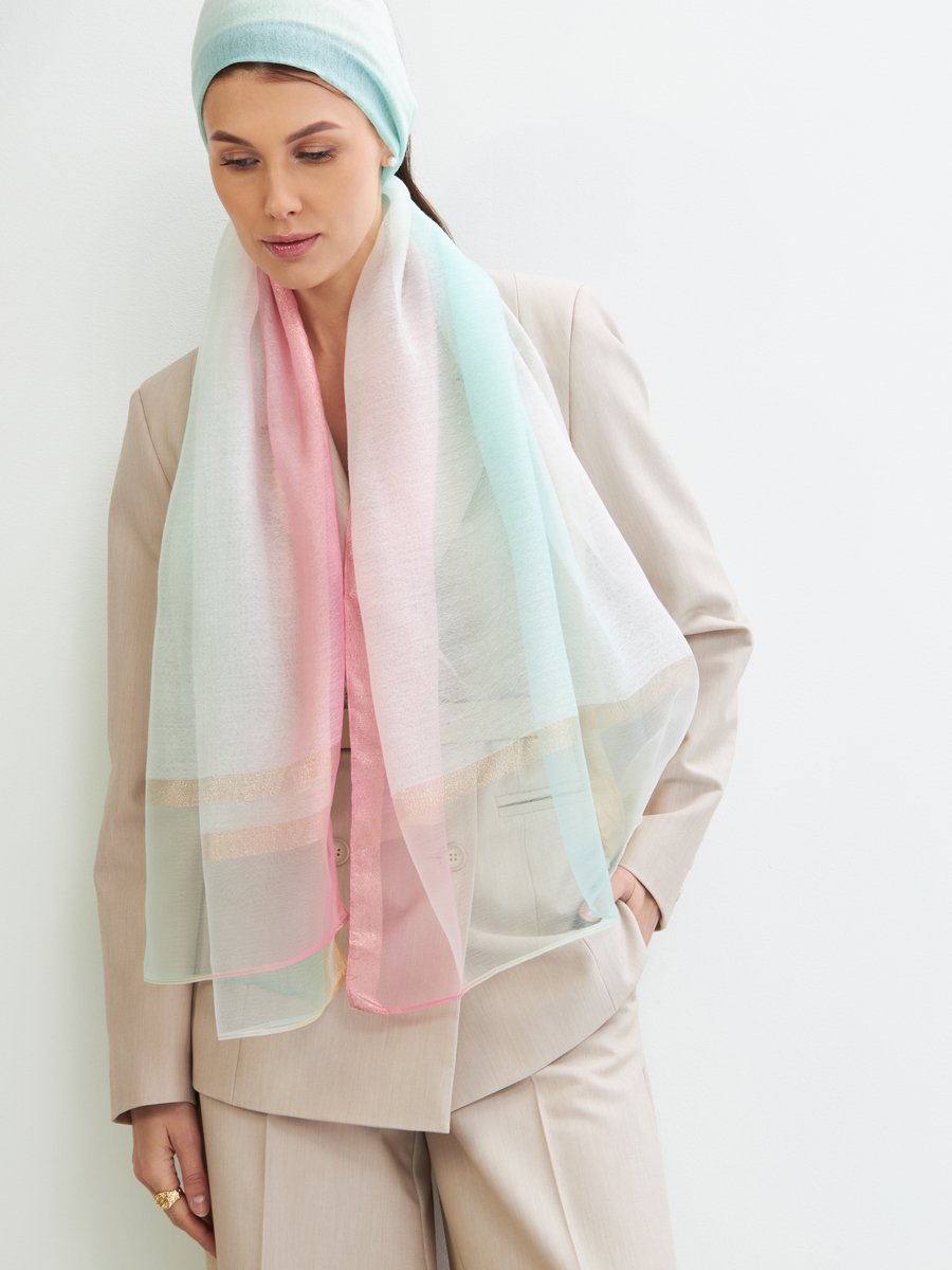 Палантин женский SH25V-16-1 – Элегантность и Высокое Качество для Вашего АссортиментаПредставляем уникальный аксессуар от российского производителя – женский палантин, разработанный для требовательной аудитории ваших бутиков и шоурумов. Мы создаем каждую модель на собственном производстве, гарантируя безупречное качество пошива, долговечность и актуальный дизайн. Модель SH25V-16-1 – это не просто платок, это произведение искусства, которое принесет дополнительную ценность вашему предложению.Преимущества для Вашего Бизнеса и Клиентов:Исключительное Качество: Легкий, тонкий и невероятно приятный на ощупь материал обеспечивает комфорт в носке и подчеркивает статус. Атласная текстура придает изделию роскошный вид.Актуальный Дизайн: Двусторонний палантин с нежным градиентным принтом в пастельных тонах (мятный, розовый, белый) и тонкими золотистыми акцентами станет ярким акцентом любого образа. Универсальный дизайн позволяет носить его как на голову, так и на шею, предлагая клиентам множество вариантов стилизации.Широкий Спектр Применения: Идеален для повседневного использования в офисе, торжественных мероприятий, посещения храма или крещения. Подходит как мусульманский платок, косынка или накидка на плечи. Это гарантирует высокий спрос и быструю оборачиваемость товара.Привлекательность для Разных Возрастов: Легко сочетается с различными стилями, делая его идеальным подарком и универсальным дополнением к гардеробу женщин всех возрастов.Производство Полного Цикла: Мы контролируем каждый этап от разработки лекал до пошива, что обеспечивает стабильно высокое качество и возможность оперативного пополнения складских запасов.Добавьте в свой ассортимент палантин SH25V-16-1 от TANTINO, чтобы предложить своим клиентам не просто аксессуар, а символ элегантности и безупречного вкуса. Этот дизайнерский аксессуар обеспечит вам стабильный спрос и лояльность покупателей.