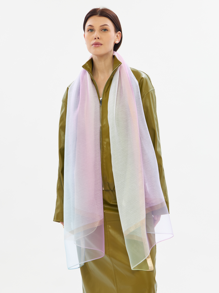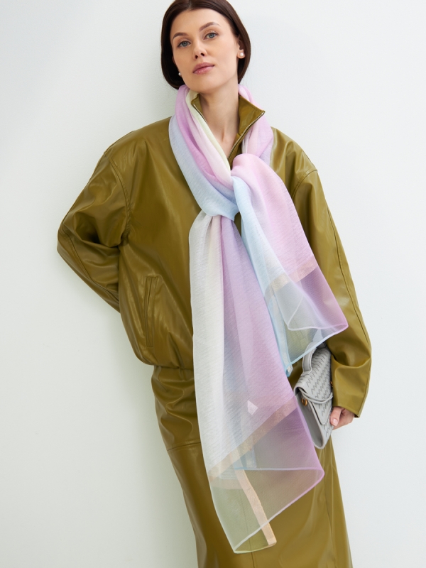 Универсальность стиля: Двусторонний палантин с нежным градиентным принтом легко адаптируется к различным стилям одежды, от классики до современного кэжуала. Может использоваться как шарф на шею, платок на голову, косынка или легкая накидка.