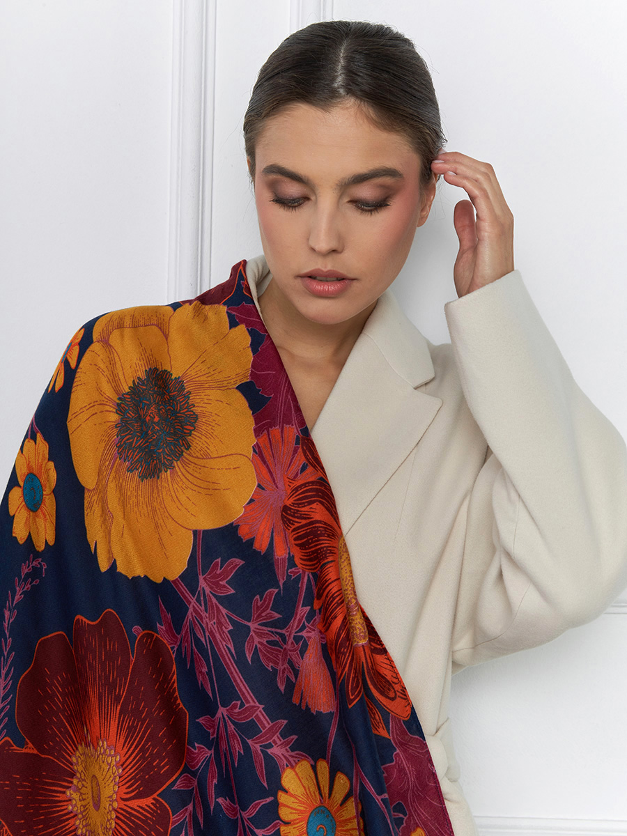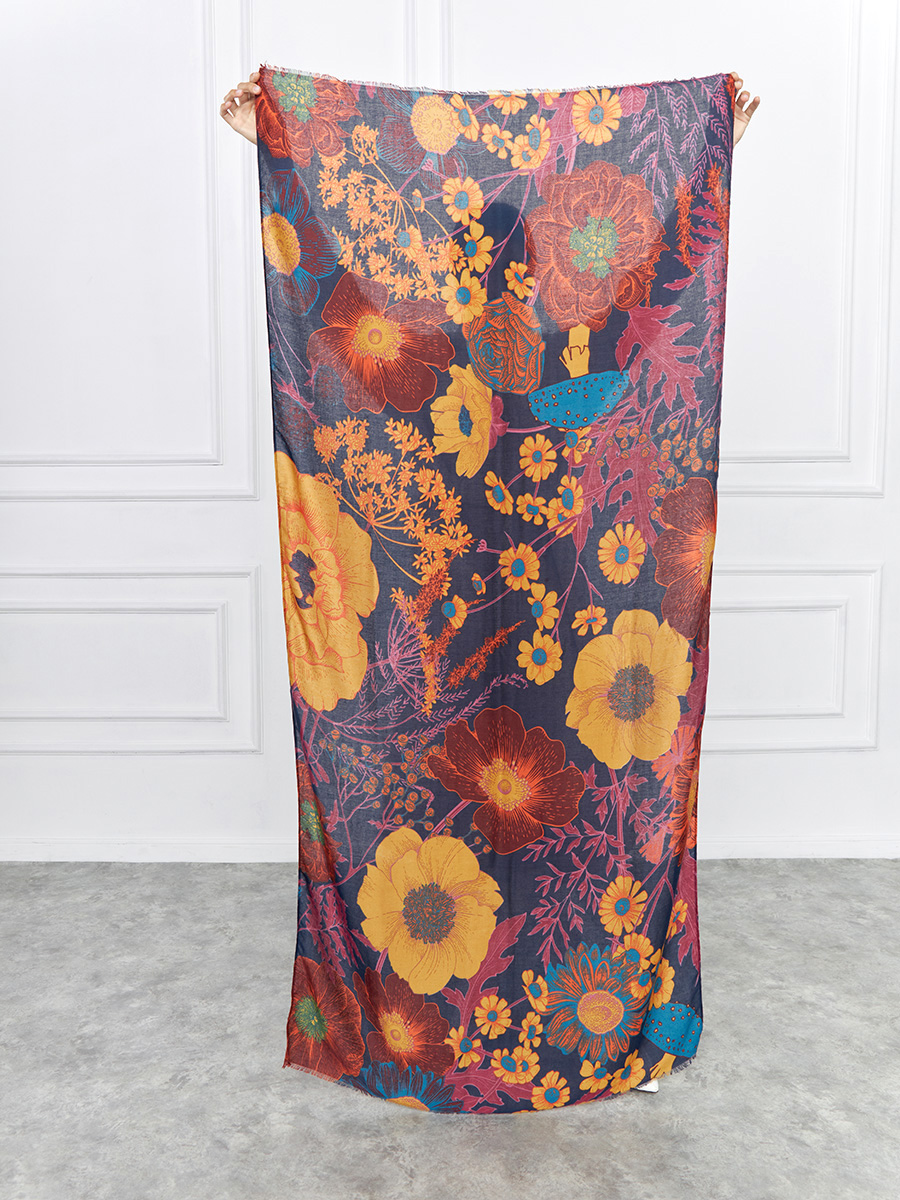 Большой, мягкий, тонкий и очень нежный двусторонний палантин с рисунком. Только ручная стирка. 55% тенсел/ 45% вискоза