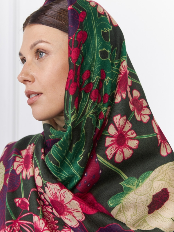 Большой, мягкий, тонкий и очень нежный двусторонний палантин с рисунком. Только ручная стирка.
