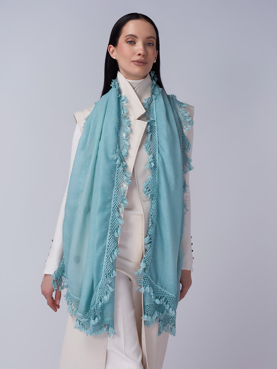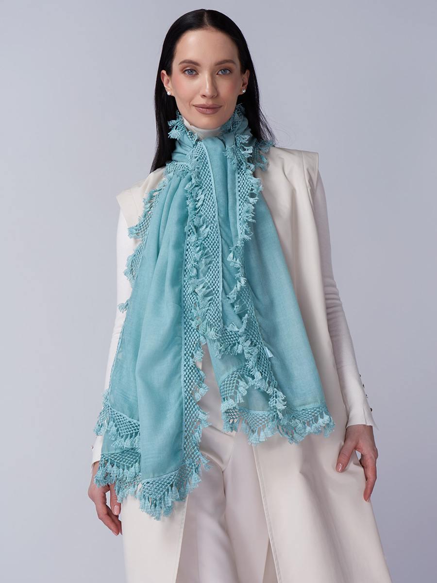 Представляем уникальный женский палантин, который станет жемчужиной ассортимента вашего магазина. Эта модель разработана нашей командой с особым вниманием к деталям, сочетая превосходное качество материалов и актуальный дизайн. Мы - российский производитель полного цикла, гарантирующий высочайшие стандарты.Особенности палантина SHUT-152-2:Непревзойденное качество: Изготовлен из тонкой, мягкой и невероятно нежной ткани, приятной к телу. Обеспечивает комфорт и легкость.Элегантный дизайн: Палантин в модном мятном оттенке, легко сочетается с различными стилями. Изюминка — эффектный ажурный рисунок по краю, дополненный изящной бахромой. Это придает изделию уникальность и утонченность.Универсальность и актуальность: Большой размер позволяет использовать его различными способами: как стильный акцент, так и изысканное дополнение к наряду. Отвечает последним модным тенденциям, гарантируя высокий спрос.Высокая маржинальность: Благодаря эксклюзивному дизайну и безупречному исполнению, палантин SHUT-152-2 обладает высоким потенциалом для формирования дополнительной прибыли в вашем бутике.Приглашаем к сотрудничеству оптовых закупщиков и владельцев модных пространств, ценящих качество и уникальность.