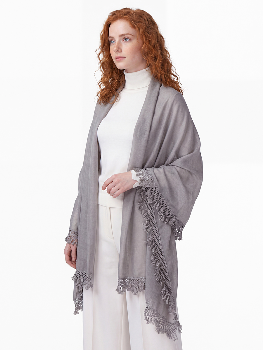 Представляем вашему вниманию элегантный женский палантин SHUT-152-5 от российского производителя TANTINO – идеальное дополнение к ассортименту вашего бутика или шоурума.Этот палантин создан для тех, кто ценит высокое качество и утонченный стиль. Модель выполнена из тонкой, невероятно мягкой и нежной ткани, которая дарит приятные тактильные ощущения и обеспечивает комфорт в течение всего дня. Универсальный серый оттенок позволяет легко комбинировать его с разнообразными элементами гардероба, делая палантин востребованным аксессуаром.Особое внимание привлекает изысканная ажурная бахрома по краю изделия. Этот уникальный дизайнерский элемент придает палантину SHUT-152-5 особую легкость и воздушность, подчеркивая актуальность и внимание к деталям, свойственное всем изделиям TANTINO.Преимущества для ваших клиентов и вашего бизнеса:Премиальное качество: Мы осуществляем полный цикл производства, от конструирования до пошива, гарантируя безупречное исполнение каждого изделия.Актуальный дизайн: Нейтральный цвет и ажурный декор делают палантин ультрамодным и легко вписываемым в различные стили, от классики до кэжуал.Комфорт и нежность: Мягкая текстура ткани обеспечивает максимальное удобство носки, что непременно оценят ваши покупательницы.Высокая маржинальность: Аксессуары TANTINO пользуются стабильным спросом благодаря своему качеству и эстетике, обеспечивая высокую оборачиваемость и прибыль.Универсальность: Может быть использован как головной убор, шарф или элегантная накидка, предлагая клиентам многообразие стилистических решений.Добавьте палантин SHUT-152-5 в ваш ассортимент и предложите своим клиентам не просто аксессуар, а часть тщательно продуманного и качественного образа. Только ручная стирка поможет сохранить первозданный вид изделия надолго.