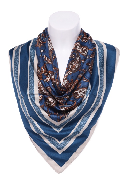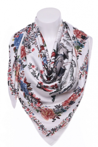Легкий платок из мягкого искусственного шелка с принтом. Обработка кромки-подрубка.