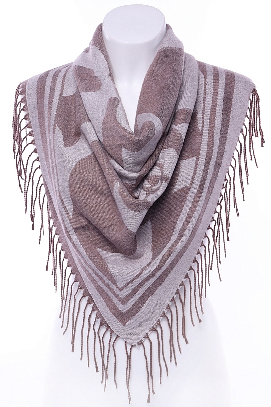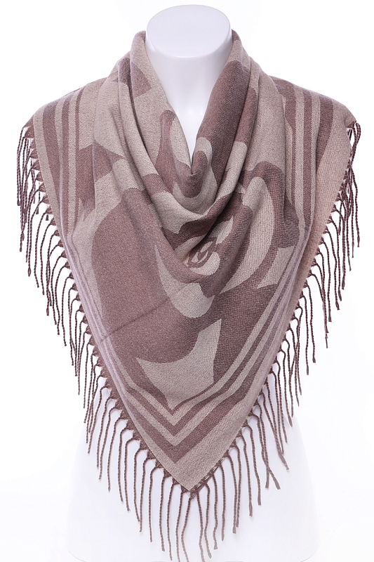 Теплый, мягкий платок. На двух противоположных краях кисти, два других заканчиваются кромкой.