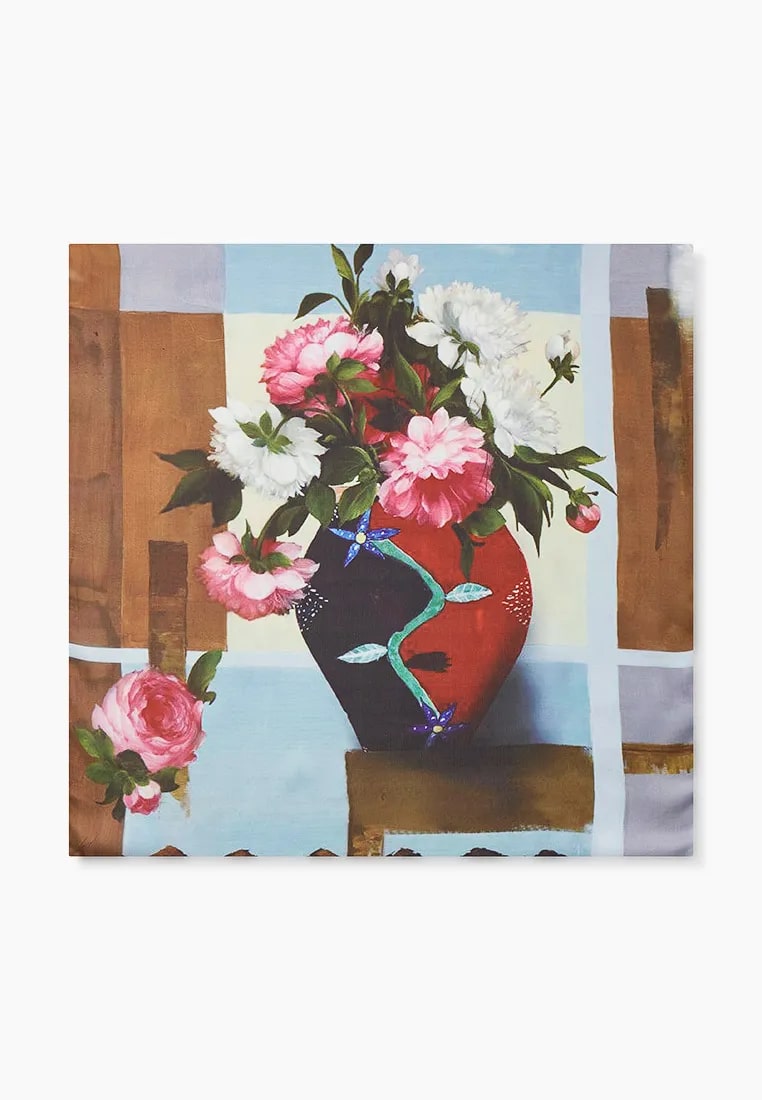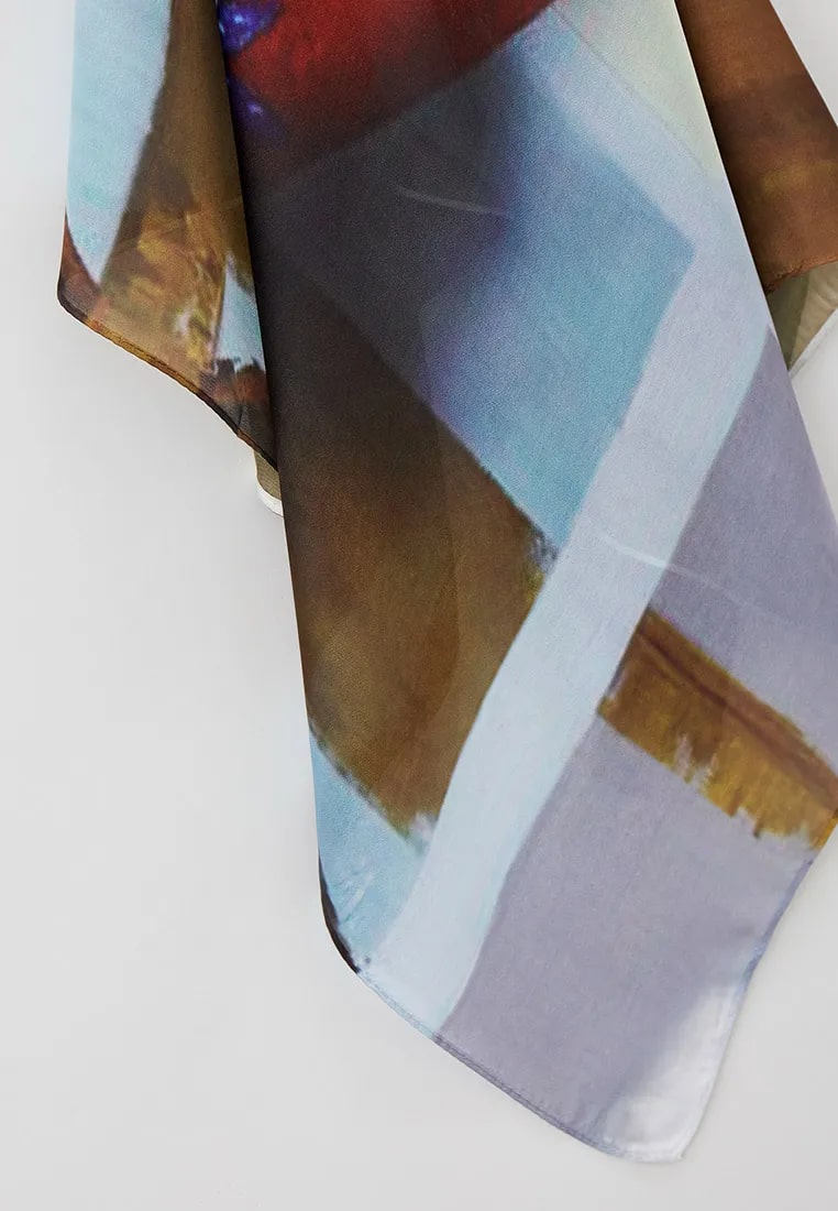 Небольшой шейный платок из ткани сатинового переплетения. Края изделия подогнуты вручную. Только ручная стирка.