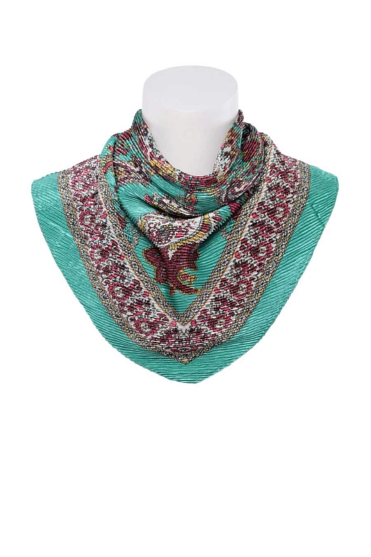 Гофрированный платок из принтованного креп-атласа. Обработка кромки - подрубка.