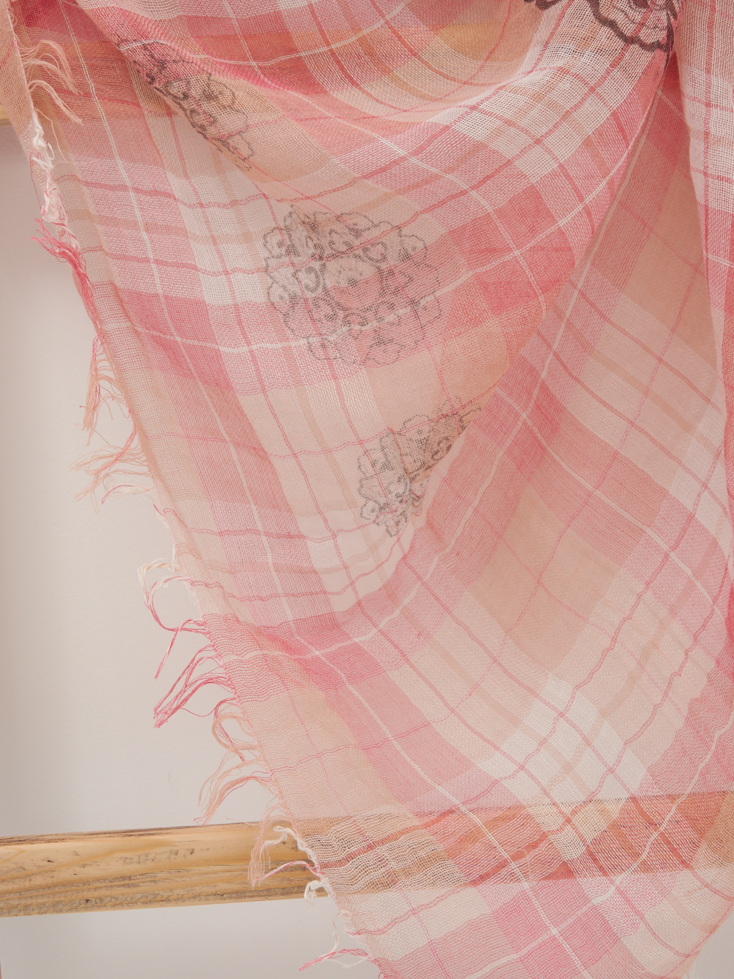 Оригинальный двусторонний платок. Обработка края-бахрома. На лицевую и изнаночную сторону изделия нанесен рисунок. Только ручная стирка.