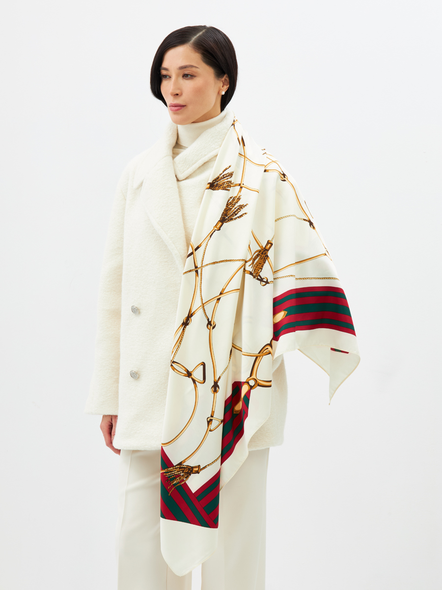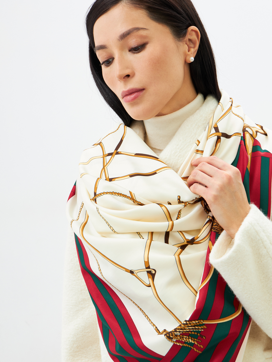 Представляем женский платок LO-125 – незаменимый элемент ассортимента для вашего бутика или шоурума. Этот эффектный аксессуар покоряет роскошью и универсальностью, гарантируя высокую оборачиваемость и маржинальность для вашего бизнеса.Платок выполнен из высококачественной ткани с нежной атласной текстурой, придающей благородный блеск. Двусторонний дизайн позволяет создавать разнообразные образы, увеличивая ценность продукта для конечного покупателя.Принт в стиле "арт-деко" с изысканными золотистыми цепями и кистями дополнен контрастными красно-зелеными полосами. Этот классический, но актуальный узор легко вписывается как в повседневные, так и в торжественные ансамбли, делая платок идеальным дополнением к любой одежде.Преимущества для оптовых партнеров:Качество исполнения: Аккуратная обработка краев подтверждает тщательный подход к производству и долговечность. Мы, как производитель полного цикла, гарантируем безупречность каждого платка.Практичность ухода: Возможность машинной деликатной стирки упрощает уход, что важно для конечных покупателей.Универсальность стиля: Легко сочетается с различными стилями, повышая спрос.Выгодные условия: Собственное производство обеспечивает оптимальные цены и стабильные поставки качественной продукции.Добавьте платок LO-125 в ассортимент и предложите покупателям символ элегантности и безупречного вкуса, выгодно выделив ваш магазин на рынке.
