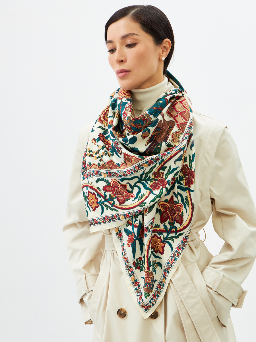 Представляем уникальный женский платок LO-1254-1, созданный для тех, кто ценит безупречное качество и актуальный дизайн. Этот аксессуар станет ярким акцентом в ассортименте вашего бутика или шоурума, привлекая внимание самых взыскательных покупательниц.Особенности модели:Изысканный дизайн: Платок выполнен в элегантном стиле "арт-деко", который сейчас на пике популярности. Сочетание насыщенных оттенков глубокого бирюзового, бордо и горчичного на кремовом фоне создает роскошный и запоминающийся узор, идеально гармонирующий с различными стилями одежды.Двусторонняя печать: Особая технология двусторонней печати делает платок универсальным, позволяя создавать разнообразные образы и демонстрировать глубину рисунка с обеих сторон. Это значительно расширяет возможности стайлинга для конечных покупателей.Превосходная ткань: Атласная текстура придает изделию благородный блеск и невероятную мягкость. Материал отлично драпируется, обеспечивая комфорт и роскошный вид. Приятный на ощупь, он дарит ощущение легкости и воздушности.Безупречное исполнение: Края платка аккуратно обработаны, что гарантирует долговечность и сохранение первозданного вида даже при активной носке. Мы уделяем внимание каждой детали, обеспечивая высокое качество пошива, которое так ценят ваши клиенты.Легкость ухода: Изделие подходит для машинной деликатной стирки, что упрощает уход и продлевает срок службы платка, сохраняя его яркость и форму.Платок LO-1254-1 – это не просто аксессуар, это инвестиция в стиль и элегантность, которая принесет вашему бизнесу стабильный спрос и лояльность клиентов. Предложите своим покупательницам изделие, которое подчеркнет их индивидуальность и добавит шика в любой гардероб. Мы, как российский производитель полного цикла, гарантируем стабильные поставки и высокое качество каждой единицы продукции.