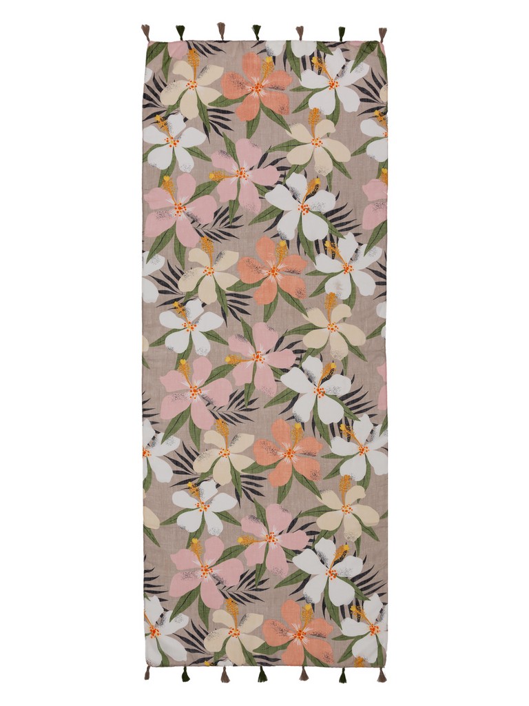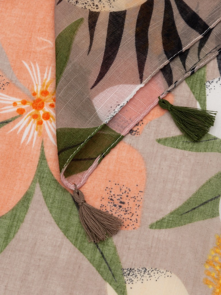 Палантин женский торговой марки Labbra. Состав: 50% модал, 30% хлопок, 20% лен. Тип подгибки: машинная подгибка, кисти. Размер: 80х180см.