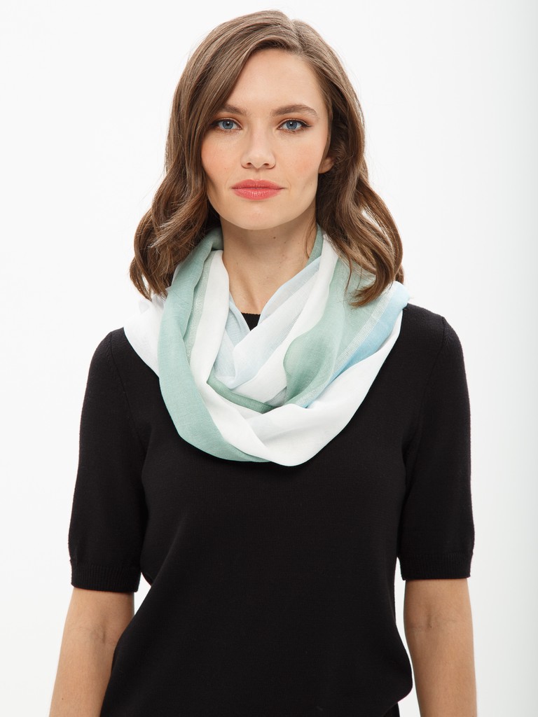 Палантин  женский торговой марки Labbra. Состав: 70% хлопок, 20% лен, 10% люрекс. Тип подгибки: фабричная закрепка, реснички. Размер: 70х188см.