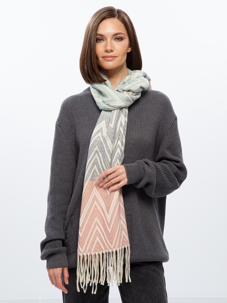 Палантин женский торговой марки Labbra. Состав: 50% шерсть, 20% хлопок, 30% акрил. Тип подгибки: фабричная закрепка, кисти. Размер: 65х180см.