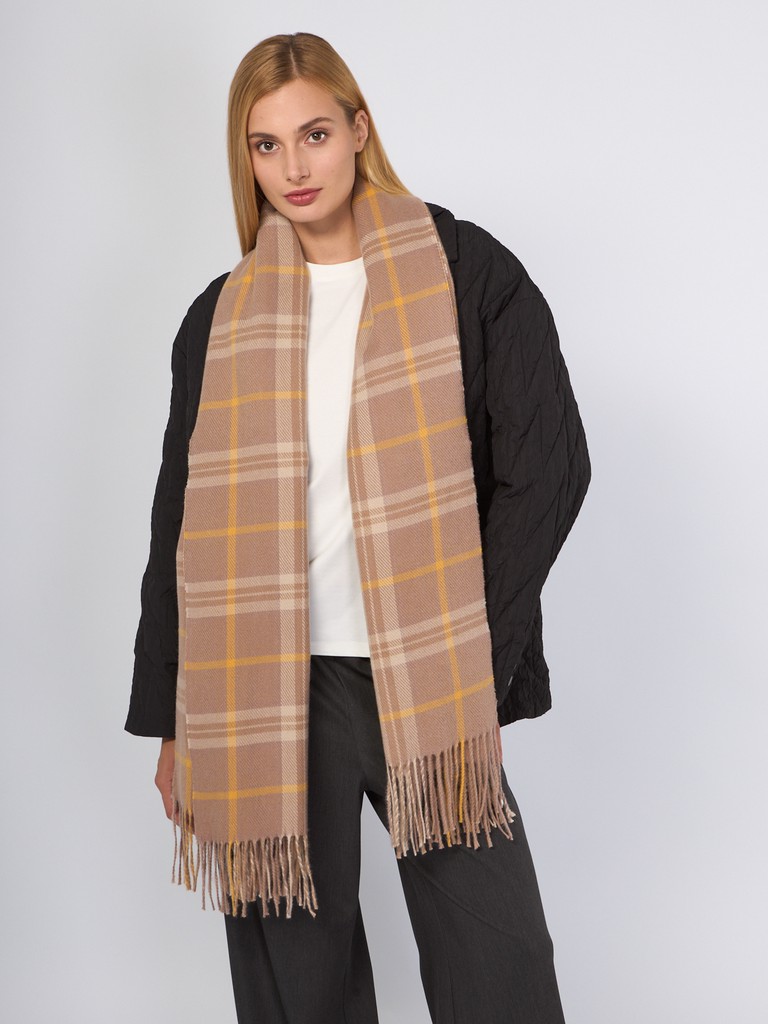 Палантин  женский торговой марки Labbra. Состав: 50% шерсть, 20% хлопок, 30% акрил. Тип подгибки: фабричная закрепка, кисти. Размер: 65х180см.