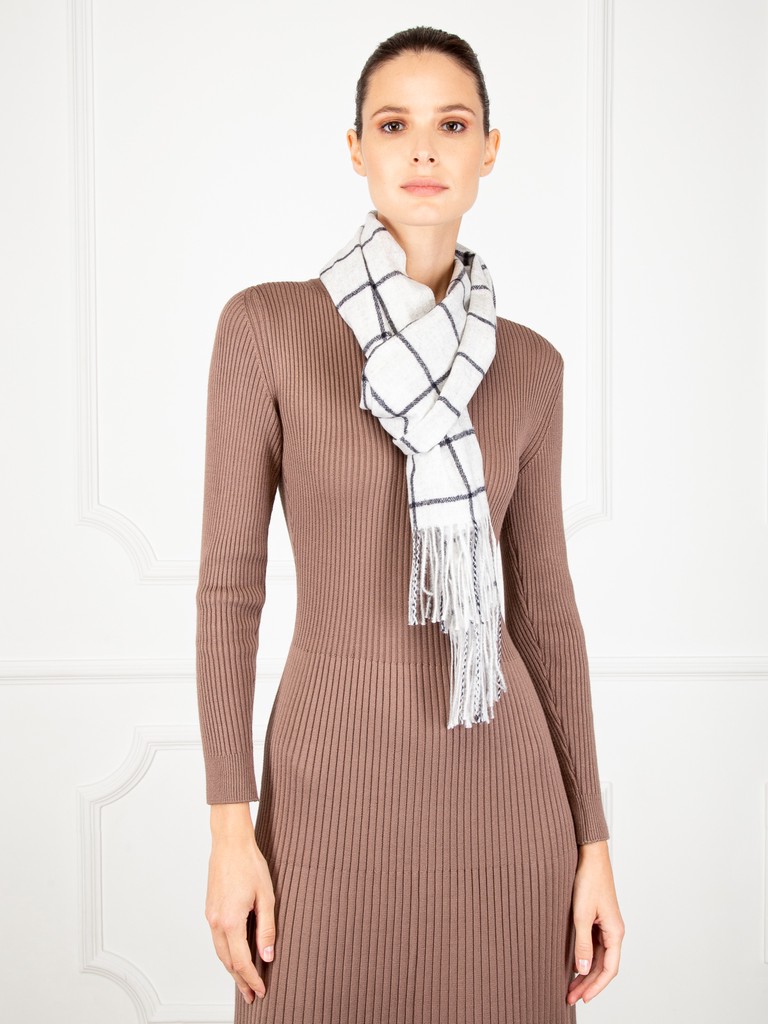 Палантин женский торговой марки Labbra. Состав: 50% шерсть, 20% хлопок, 30% акрил. Тип подгибки: фабричная закрепка, кисти. Размер: 40х185см.