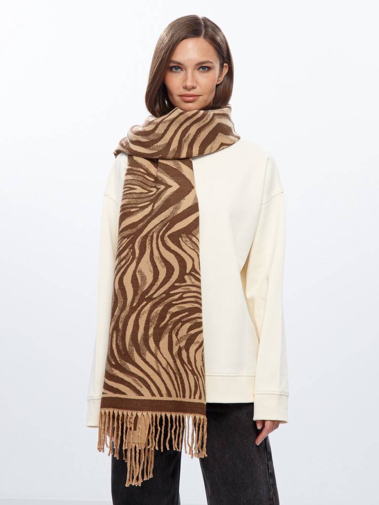 Палантин женский торговой марки Labbra. Состав: 50% шерсть, 20% хлопок, 30% акрил. Тип подгибки: фабричная закрепка, кисти. Размер: 63х180см.