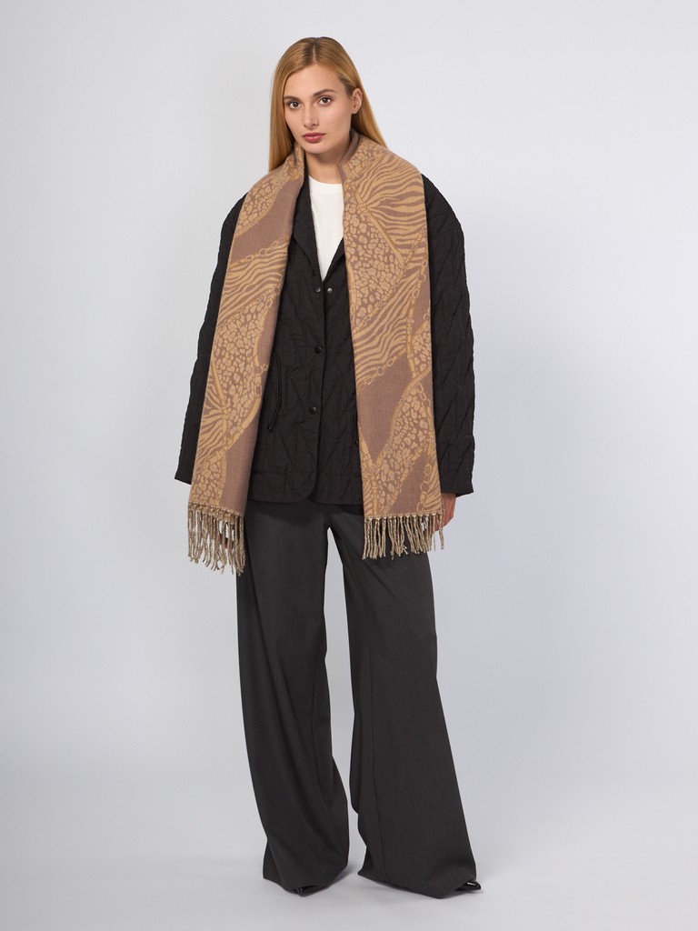 Палантин  женский торговой марки Labbra. Состав: 50% шерсть, 20% хлопок, 30% акрил. Тип подгибки: фабричная закрепка, кисти. Размер: 65х180см.