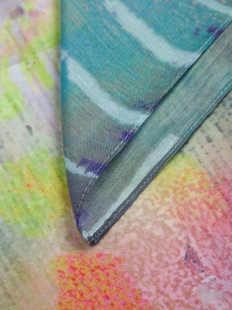 Палантин женский торговой марки ELEGANZZA. Состав: 70% шелк, 30% хлопок, полотняное. Тип подгибки: машинная подгибка. Размер: 70х180см.