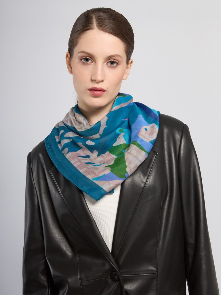 Платок женский торговой марки ELEGANZZA. Состав: 50% шелк, 30% шерсть, 20% модал. Тип подгибки: машинная подгибка. Размер: 120х120см.