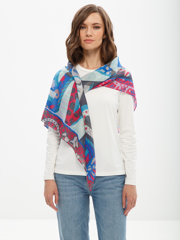 Платок женский торговой марки ELEGANZZA. Состав: 70% шелк, 30% хлопок. Тип подгибки: машинная подгибка. Размер: 110х110см.