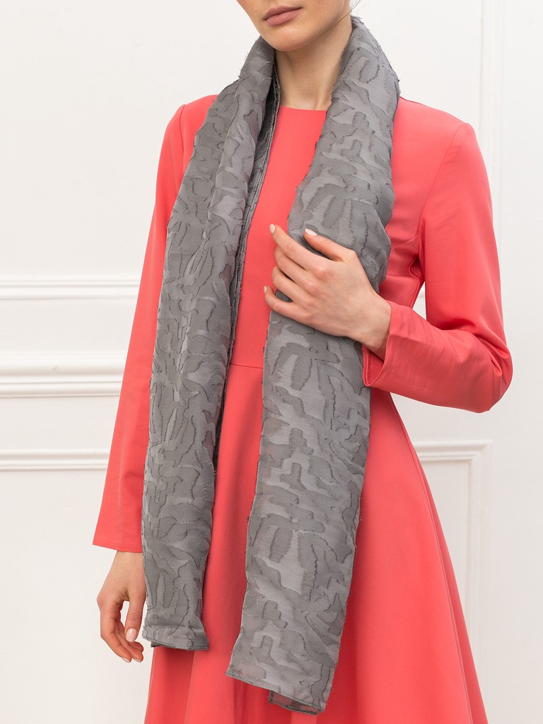Палантин торговой марки ELEGANZZA. Состав: 50% шелк, 50% лен. Тип подгибки: машинная подгибка. Размер: 53х180 см.