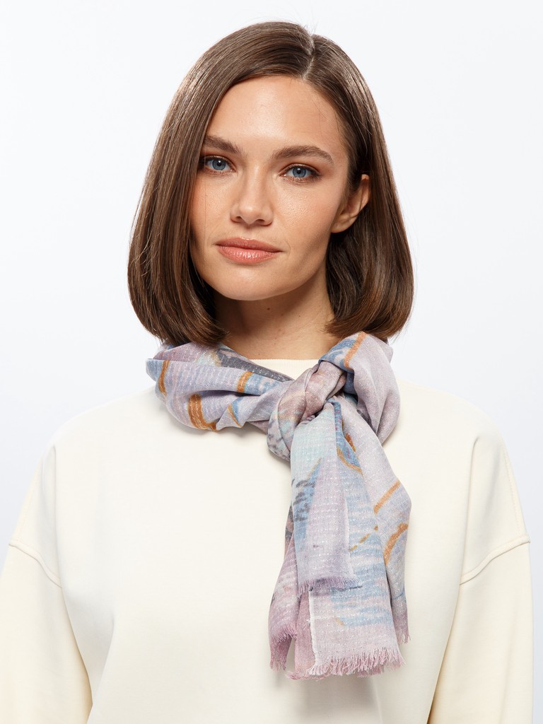 Палантин женский торговой марки ELEGANZZA. Состав: 70% шерсть, 20% шелк, 10% люрекс. Тип подгибки: фабричная закрепка, реснички. Размер: 70х180см.