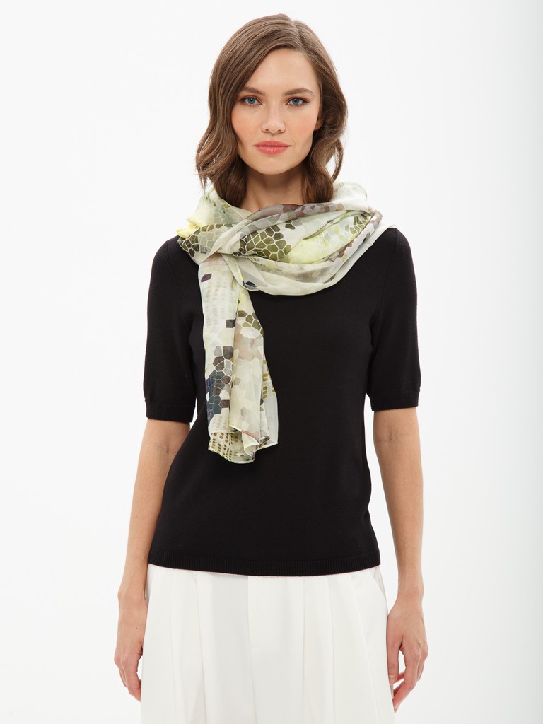 Палантин  женский торговой марки ELEGANZZA. Состав: 100% шелк, шифон. Тип подгибки: машинная подгибка. Размер: 110х180см.
