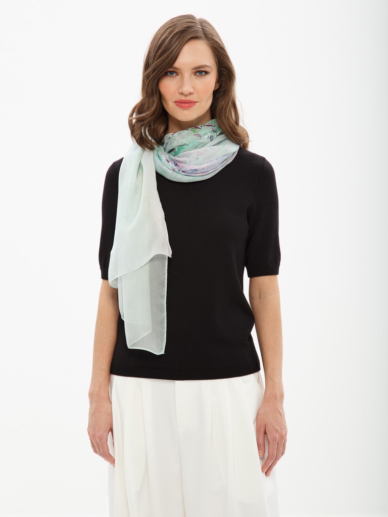 Палантин  женский торговой марки ELEGANZZA. Состав: 100% шелк, шифон. Тип подгибки: машинная подгибка. Размер: 65х180см.