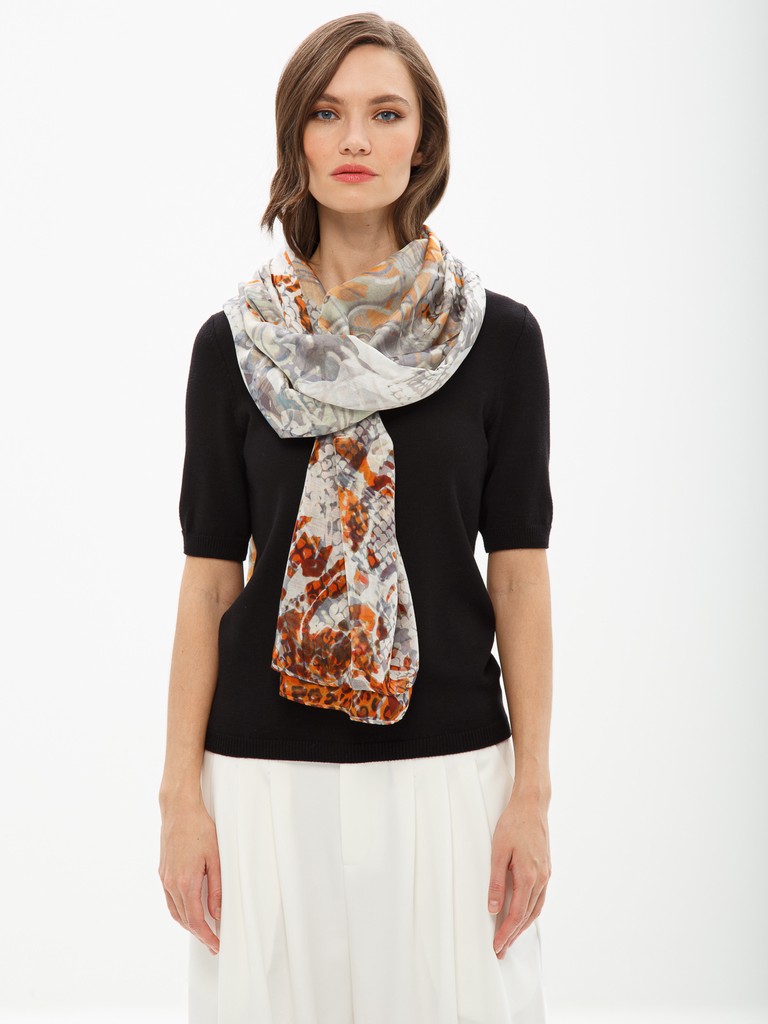 Палантин  женский торговой марки ELEGANZZA. Состав: 30% шелк, 70% модал. Тип подгибки: машинная подгибка. Размер: 110х180см.