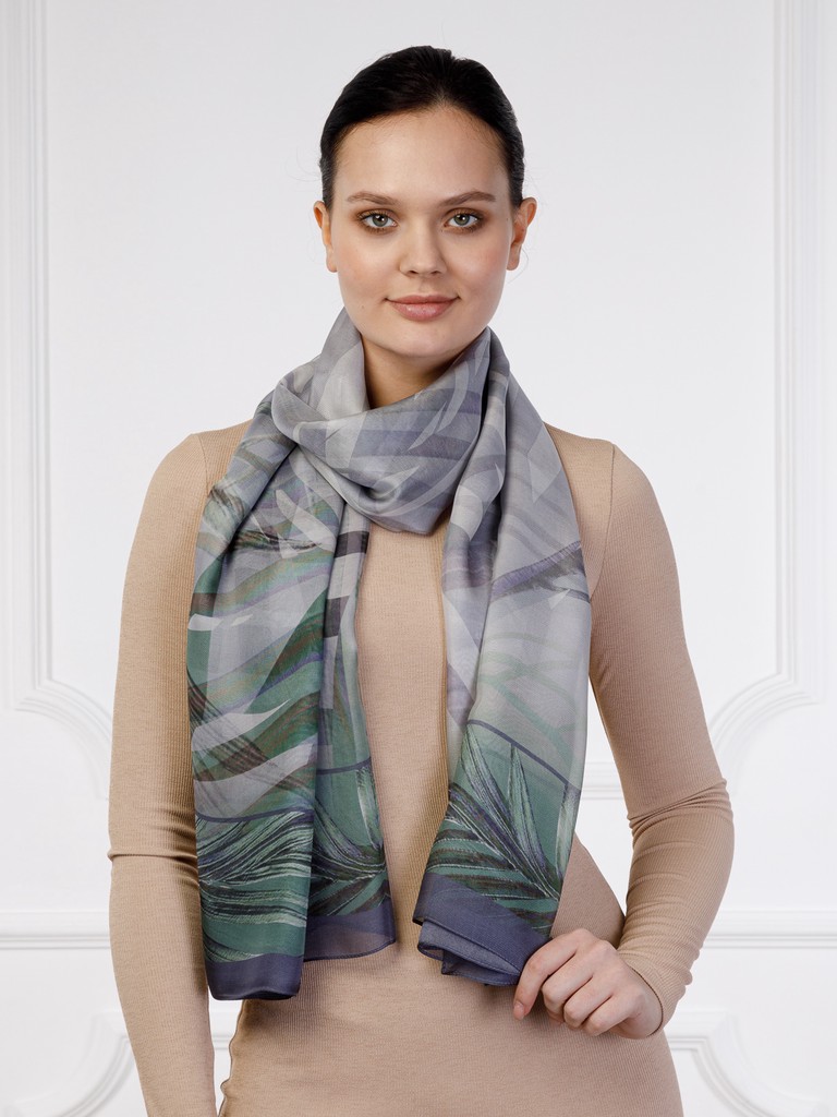 Палантин женский торговой марки ELEGANZZA. Состав: 100% шелк, шифон твил, повышенной плотности (7mm). Тип подгибки: машинная подгибка. Размер: 110х180.