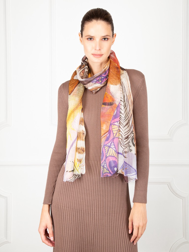Палантин женский торговой марки ELEGANZZA. Состав: 60% шелк, 40% хлопок. Тип подгибки: реснички. Размер: 58х180см.