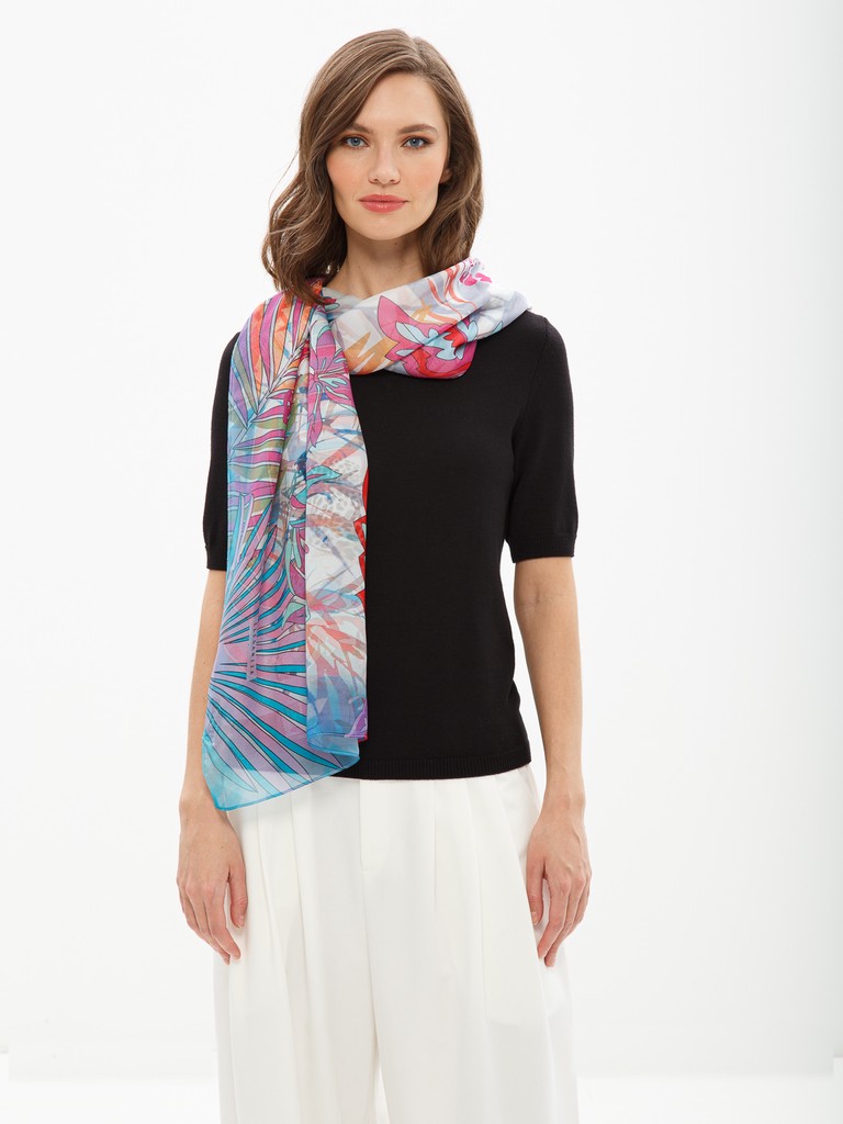 Палантин  женский торговой марки ELEGANZZA. Состав: 100% шелк, шифон твил, повышенной плотности (7mm). Тип подгибки: машинная подгибка. Размер: 110х180см.
