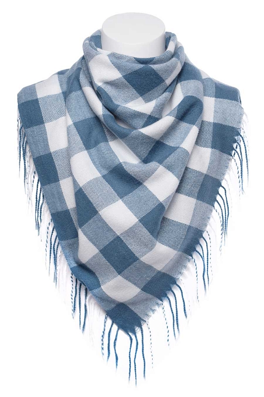Теплый, мягкий платок.  На двух противоположных краях платка кисти, два других заканчиваются кромкой.