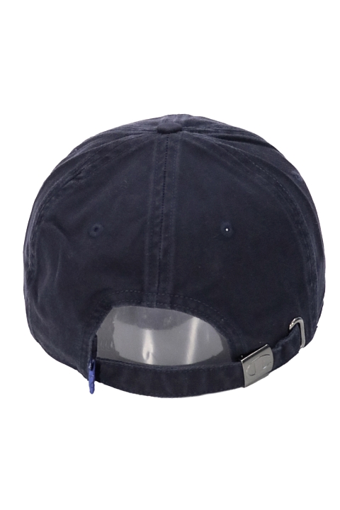 Бейсболка выполнена из плотной, мягкой хлопковой ткани под джинсу, с классическим изогнутым козырьком. Передняя часть модели мягкая. Размер регулируется металлической застежкой.