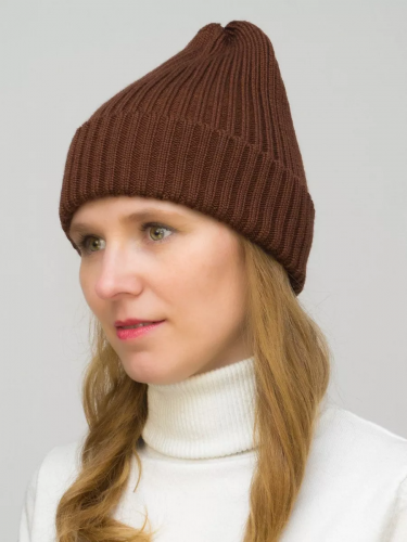 Шапка женская весна-осень Леся (Цвет коричневый), размер 54-58, шерсть 50%